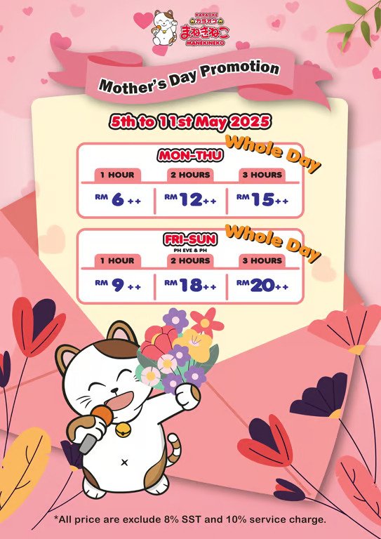 This Mother’s Day, treat the most special woman in your life to joyful moments filled with music, laughter, and great vibes! From 5th to 11th May 2025, Karaoke Manekineko is rolling out a heartwarming promotion to make your celebration extra meaningful — and affordable too!